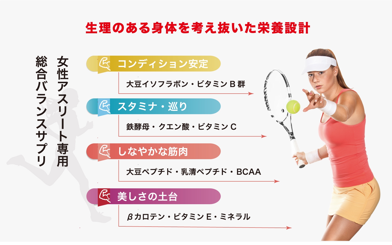 生理のある女性アスリートにとって、安定したコンディション作りは最大の課題です。男性と同じ栄養摂取だけでは、女性アスリートの身体は満たされません。