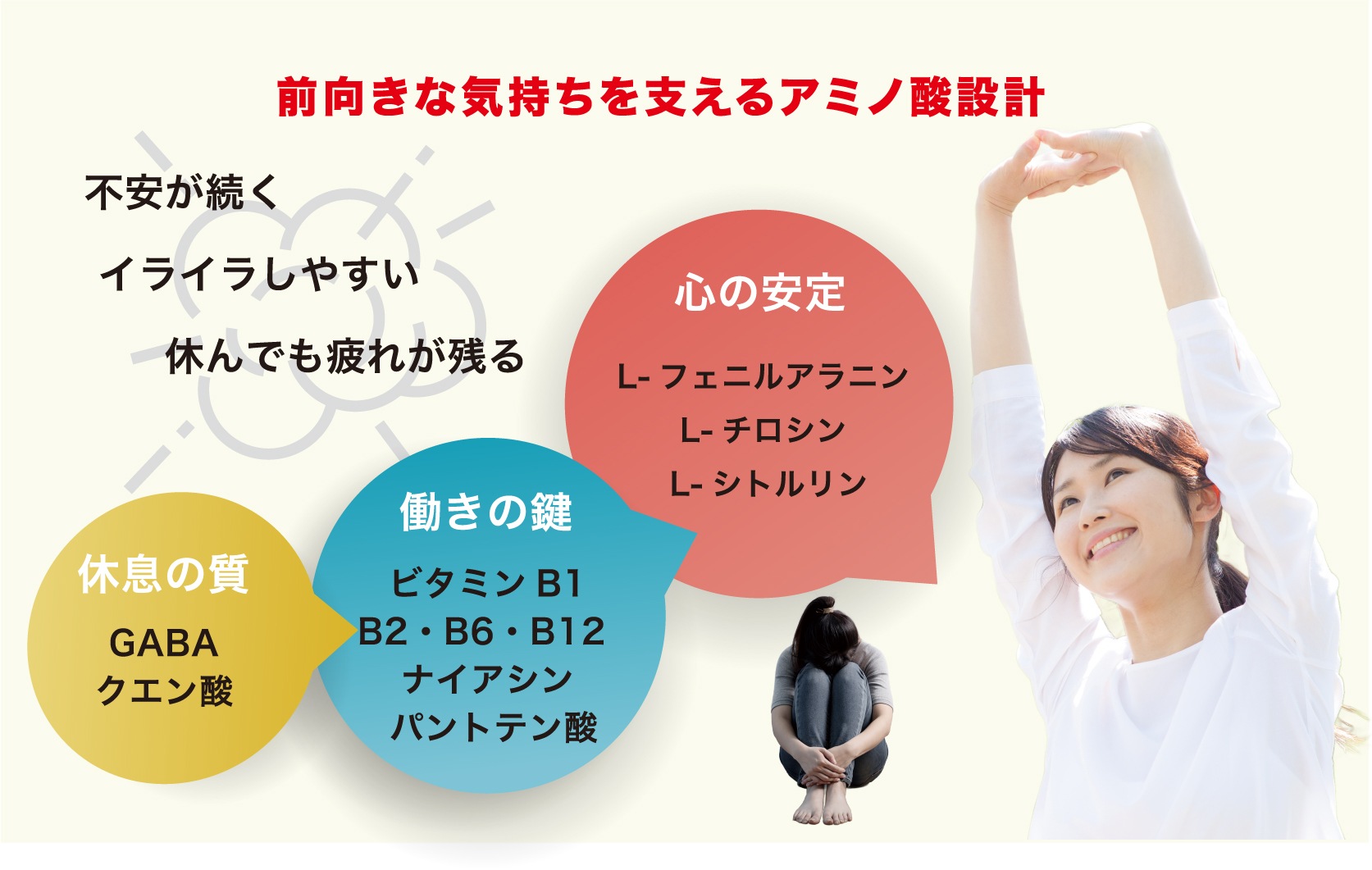 • すり減った心が必要とする栄養成分を科学的にチャージする心のサプリメント